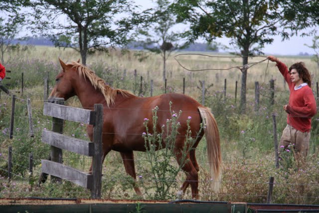 Un día tuvimos la suerte de poder ver como dos "gauchitos" esquilaban a una oveja, de cada una sacan aproximadamente entre 4 y 9 kilos de lana dependiendo del tamaño del ejemplar. Agustin lo hacía con una facilidad y velocidad impresionante, utilizaba para trabajar ambas manos. La vida en el campo es muy dura, constantemente tienes cosas que hacer. Agustin nos explicó que al día siguiente se tenía que levantar a las 03:30 porque tenía que esquilar a más de 80 ovejas... por lo que terminaría por la tarde, haciendo una jornada de unas 12-14 horas en las condiciones que podéis ver en las fotos.